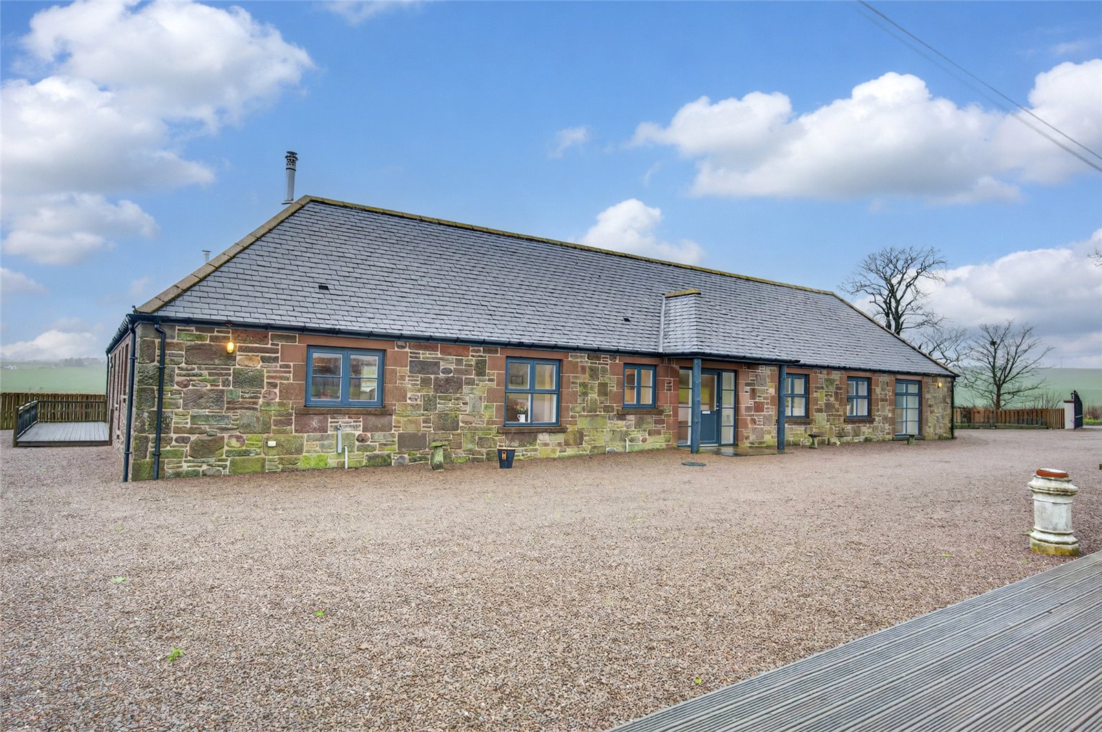 Situated in a superb countryside location, this enchanting period detached four-bedroom steading exudes charm and character while offering exceptional privacy and security.